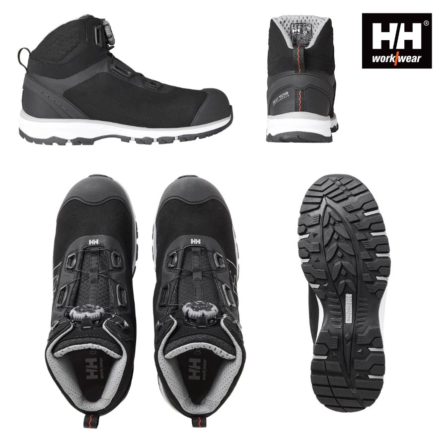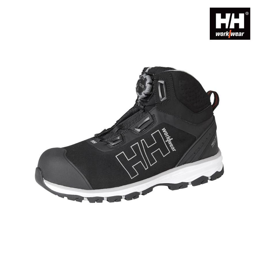 Chelsea Evolution MID BOA Wide Turvakengät S3. Leveälestinen Helly Hansen Workwear -malliston turvakenkä, joka tarjoaa erinomaista käyttömukavuutta ja luotettavaa suojaa vaativiin työolosuhteisiin. Vedenpitävä ja hengittävä Helly Tech® -kalvo pitää jalat kuivina, ja BOA® M4 -kiinnitysjärjestelmä tekee kengistä helposti säädettävät ja nopeasti puettavat. Kengän komposiittivarvassuoja ja metalliton naulaanastumissuoja takaavat kevyen mutta tehokkaan suojan.