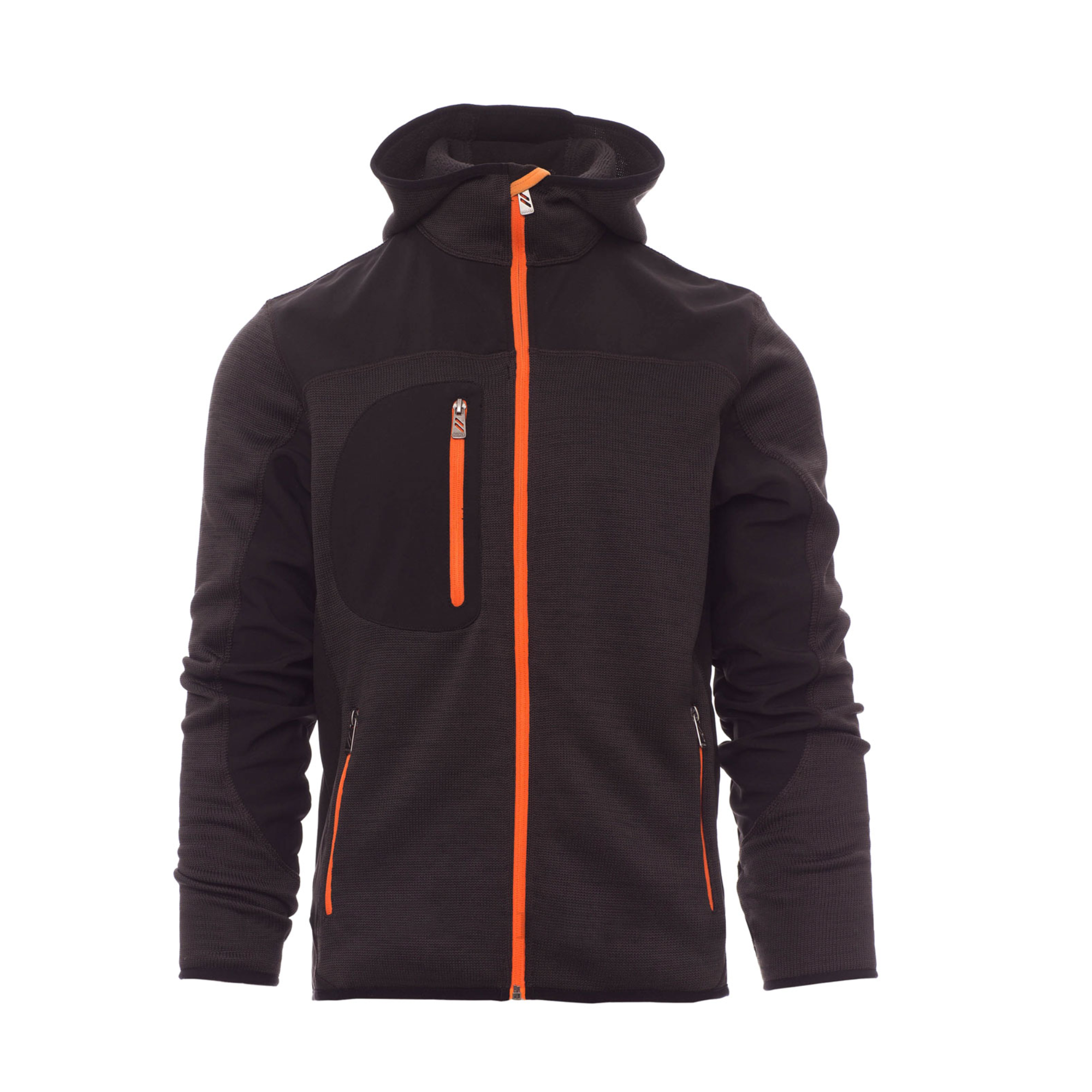 Tummanharmaa – oranssit vetoketjut tuovat modernia kontrastia