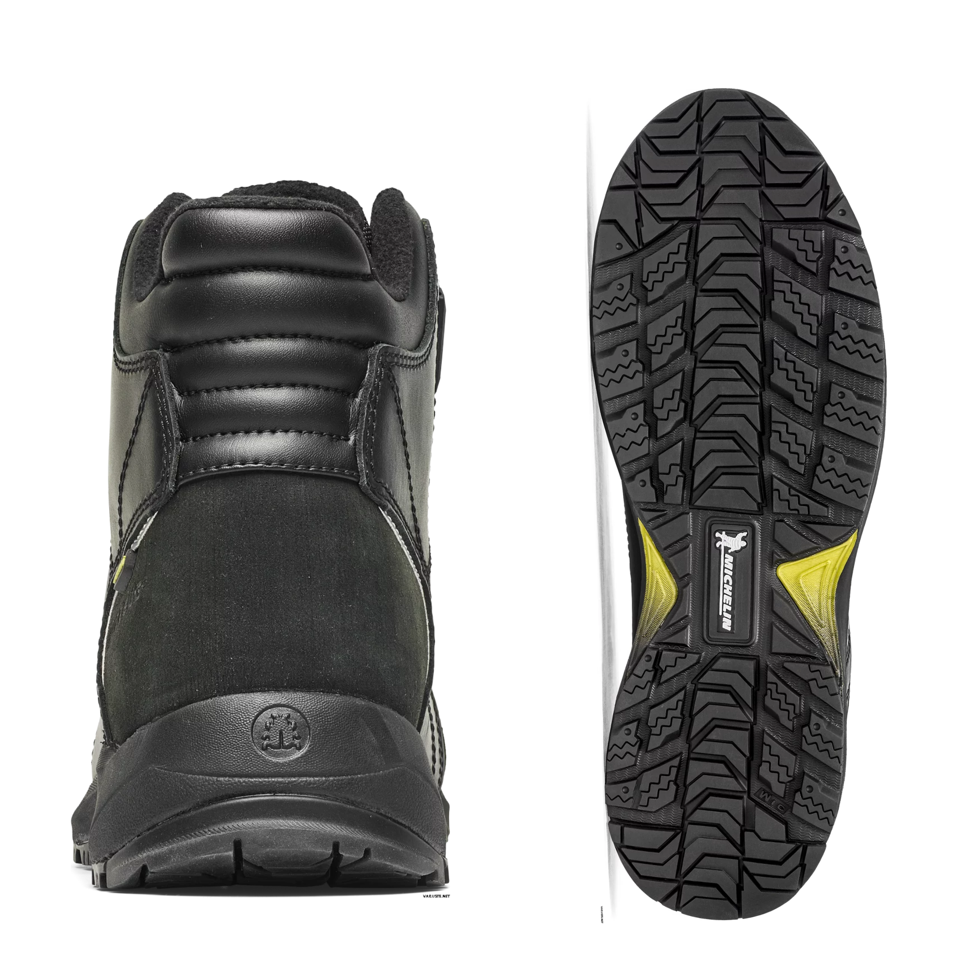 Komposiittivarvassuoja ja puristemuovattu EVA-välipohja tarjoavat tehokkaan iskunvaimennuksen ja keventävät jalkojen kuormitusta. Öljynkestävä ulkopohja on valmistettu talvikäyttöön soveltuvasta Michelin Wic -kumiseoksesta, joka takaa varman pidon myös ilman nastoja.